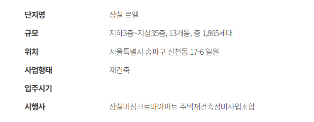 | 위치 | 서울시 송파구 잠실동 195번지 일원 |