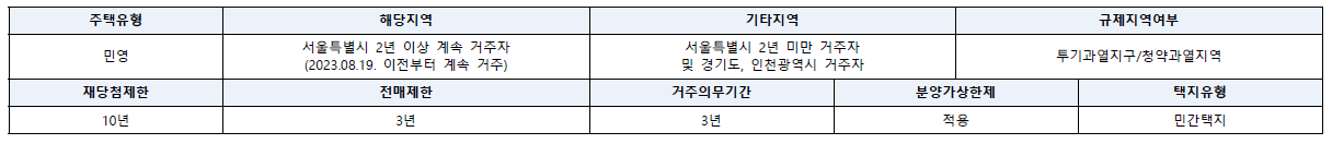 - 전매 제한 3년, 실거주 의무 3년, 재당첨 제한 10년