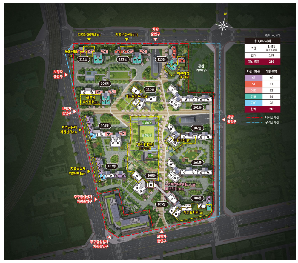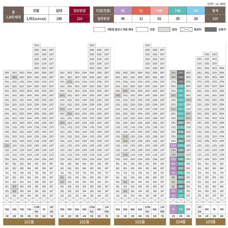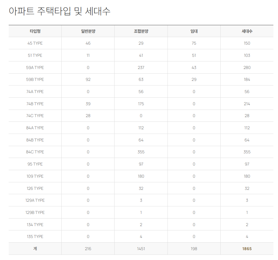 | 세대수 | 총 1,865세대 중 일반분양 216세대 |